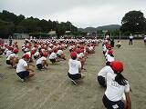 ▼「体操の隊形に 開け」の号令で、位置を決めました。