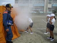 本日避難訓練を実施しました。地震が起き、その後火災が発生したという想定で行いました。栃木市消防署西方分署の5名の隊員の方にご協力いただき、避難終了後、煙ハウス体験と水消火器による消火訓練を行いました。児童たちは、自分の命は自分で守ることを意識して、真剣な態度で訓練に参加していました。