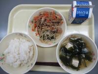 ごはん 牛乳 和風ビビンバの具 ナムル わかめスープです。