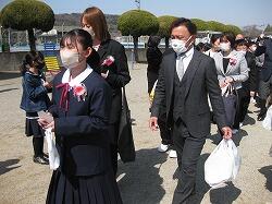 校庭にて、4・5年生と教職員が、卒業生の見送りをしました。