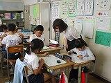 ALTの先生と、担任の先生とのTT(ティーム・ティーチング)の授業で、歌やダンスを取り入れながら、楽しく英語の学習をしています。