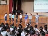 業間の時間に体育館で、児童集会をおこないました。今回は「運営委員会」の発表でした。