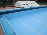 高学年児童とPTA奉仕活動で「プール清掃」を行った後、予定していたプールの工事(ざらついた床・側面の研磨や塗装)に入りました。劣化がひどく、予定よりも広範囲に修繕していただくことになり、工事が大変長引いていましたが、ようやくその工事が終わりました。