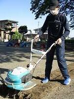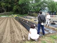 次に、嶋田さんにご協力をいただき、畝立て。あっという間に10本の畝ができました。