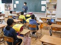 ・教室も3密を避けるようにします。・雨なので昇降口から班ごとに下校しました。