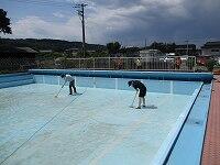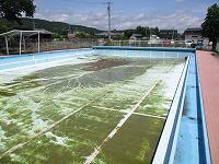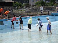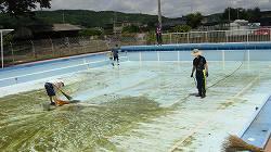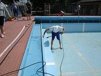 プール清掃では、プールの底にたまった泥や落葉などをきれいに取り出しました。