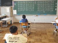 【登校後の教室の様子】・各学年とも生活の流れを板書で確認しています。確認後は、自席で読書して待ちます。