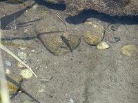 ザリガニが増え、メダカが減ってしまい心配しましたが、気に掛けて世話をしたり、メダカを入れたりしてくださった地域の方のおかげです。川エビらしきものも見られます。