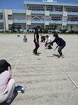 体育等で整列する際の目印になるポイントを、先生方で校庭に打ちました。