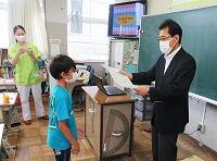 初めて見る校舎や体育、各教室など目を輝かせていました。