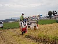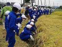 今日の午前中、西方小水田にて、稲刈りを行いました。