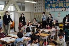最後は教室で写真撮影と挨拶をして、拍手でお別れをしましたが、子どもたちから「見送りをしたい!」という言葉があったため、玄関の外まで出て、ハイタッチをして見送りをしました。今回の交流は、子どもたちがもっている優しさが溢れた充実した時間になりました。