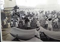 昭和の時代も西方小学校独自で臨海学校に行った記録が写真で残されています。№15紹介したように昭和28年は大洗の磯浜海岸に行っていました。この前紹介していない朝の体操の様子の写真を載せます。昭和41年度になると阿字ヶ浦海岸に行っていました。