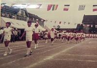 昭和48年と昭和61年の運動会での鼓笛パレードの写真を見つけました。