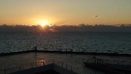 水平線から上る朝日を見ながら、朝6時に起床しました。
