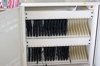 パソコン室のノートパソコン     タブレット型のパソコン   保管庫に収納しています