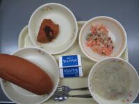 背割りコッペパン 牛乳 ツナサンドの具 大学芋 アルファベットスープ