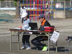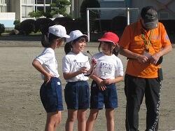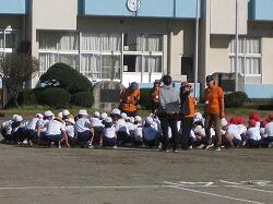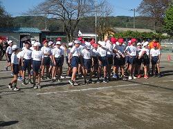 笑う昨日の雨で校庭がぬかるんでいましたが、教職員と5・6年児童が砂をまき、表面をならす作業を行ったため、走れる状態になりました了解了解