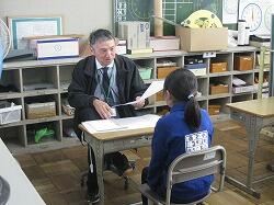 2時間目終わりの休み時間に、職員室前で遊んでいた1年生が、
