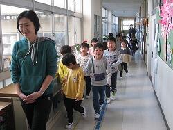 上級生は1年生の歩幅にあわせて、様子を見ながら歩いてきてくださいねお辞儀