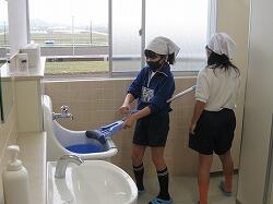 朝の片づけには、6年生がお手伝いに来ていました花丸
