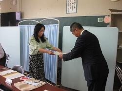 まず、学校長より挨拶させていただいた後、昨年度から引き続き、校長を含め7名の方に協議員の辞令を交付し、会長・副会長の組織を編成しました笑う(今日は、1名欠席でした。)