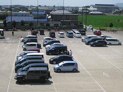 駐車場となっている校庭にも、たくさんの車が入ってきています笑う
