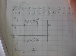 でも今日は、分数×整数の計算や「〇分の1」をもとに考えること、数直線や図で表して説明してみることなど、前時に習ったことを使って考える授業でした笑う