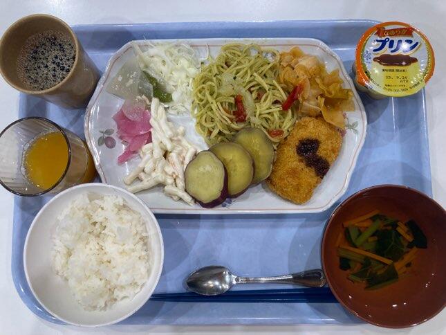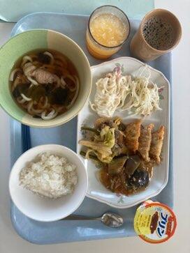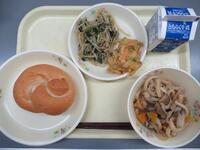 減量米粉パン 牛乳 きのこのうどん 野菜のかき揚げ 醤油和え
