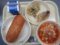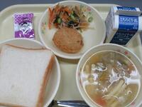 オレンジパン 牛乳 タラフリット ブロッコリーサラダ ミネストローネ