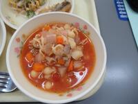 ミネストローネはトマトの酸味を感じる具だくさんなスープでした