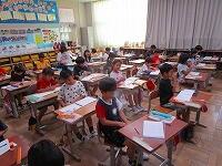 どの学年も、教師や友達の話をよく聞いて、発表したりノートを取ったりしていました