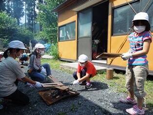 火おこし体験。大昔の人の知恵や苦労を実感し...