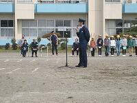 交通安全教室が行われました。金崎駐在所の片山巡査部長さん、交通指導員の福田さん、出井さんにもご来校いただき、校庭の模擬道路での児童の横断・歩行練習の様子を見ていただき、ご指導を受けました。児童達は新しく入学した1年生の安全に気遣いながら練習に取り組み、交通安全に対する意識を高めていました。