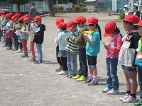 交通安全教室が行われました。金崎駐在所の片山巡査部長さん、交通指導員の福田さん、出井さんにもご来校いただき、校庭の模擬道路での児童の横断・歩行練習の様子を見ていただき、ご指導を受けました。児童達は新しく入学した1年生の安全に気遣いながら練習に取り組み、交通安全に対する意識を高めていました。