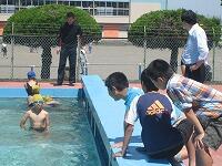 本日の昼休みプール開きが行われました。運動委員会の児童が代表して行いました。今年もプール事故が起きないように祈願をしました。その後、児童が水の中に入り、泳ぎ初めをしました。児童からは初めてなので、少し寒いという感想がでました。