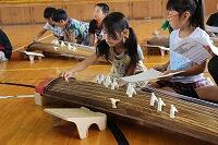 本日本校4年生が参加して、邦楽教室が行われました。邦楽演奏家の5名の先生をお招きして、主に箏の鑑賞と演奏体験を行いました。「春の海」「八重衣」の演奏を聴きました。演奏体験では、3人1組で「さくら」の曲を演奏体験しました。児童は、初めて触れる箏の演奏に真剣に取り組んでいました。