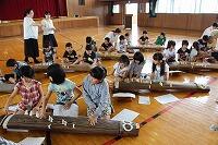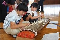 本日本校4年生が参加して、邦楽教室が行われました。邦楽演奏家の5名の先生をお招きして、主に箏の鑑賞と演奏体験を行いました。「春の海」「八重衣」の演奏を聴きました。演奏体験では、3人1組で「さくら」の曲を演奏体験しました。児童は、初めて触れる箏の演奏に真剣に取り組んでいました。