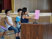 その後、児童指導主任から夏休み中の安全な過ごし方(いかのおすし・こうゆうすいかに気をつけよう)についての話、校長先生のお話がありました。