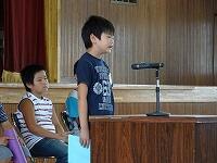 本日1学期の終業式が行われました。各学年1名の代表児童から1学期を振り返ってよくできたこと、今後がんばりたいことの発表がありました。みなさん堂々とした態度で発表ができました。