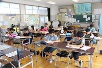 本校では夏休みに希望者を募り学習会を毎年開いています。今年度から、例年の5・6年生に加えて4年生も参加可能になりました。また、学習日も例年の2日間から6日間に増加しました。今日が学習日初日、多くの児童が参加してくれました。各学年ごとの教室に分かれ、よくわからないところを先生に質問して、個別指導を受けていました。
