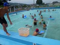 本校では夏休みに学校プールを開放しています。今年度は11日間の開放日があります。本日は6回目の開放日です。 午前1時現在プールサイドの気温36℃、水温33℃。絶好のプール日よりの中、56名が学校プールを訪れてくれました。水の楽しさを思う存分味わっていました。