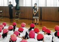文挟 利恵子養護教諭が産前休暇に入りました。産休補助教員として、仲島 千尋養護助教諭が本日着任いたしました。体育館で全校生に紹介する会が行われました。始めに、教頭先生から仲島先生の紹介がありました。その後、仲島先生からのあいさつがありました。児童は、昼休みにさっそく仲島先生に話しかけていました。