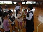 中学校のブラスバンド部の皆さんに楽器の紹介や演奏をしていただきました。楽器を触らせてもらいました。ありがとうございました。