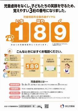 今年の7月から、全国共通で「児童相談所」への直通3けたダイヤル「189(いちはやく)」が設定されました。