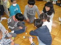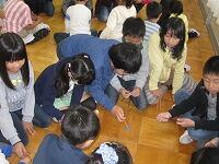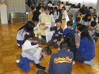 1年生から6年生まで縦割り班で楽しく練習するなか、高学年児童が、うまくはしを使えない1・2年生に優しく教えてあげている姿も見られました。