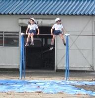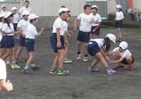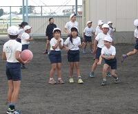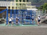 持久走練習で5分間走を2回行った後余った時間で、低学年から高学年までたくさんの児童が、ドッヂボール・サッカー・ブランコ・タイヤ跳び・鉄棒・ジャングルジムなど思い思いの遊びに熱中していました。