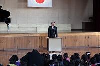 校長先生のお話を聞いて、校歌を斉唱しました。