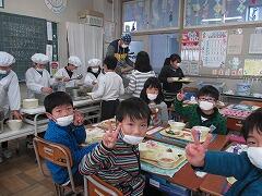 ほかの学年・学級でも、いつもと違う雰囲気のなかで、給食を楽しみました。