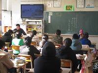 初めに、映像を見ながら、竜巻の被害について知り、避難の方法を学びました。